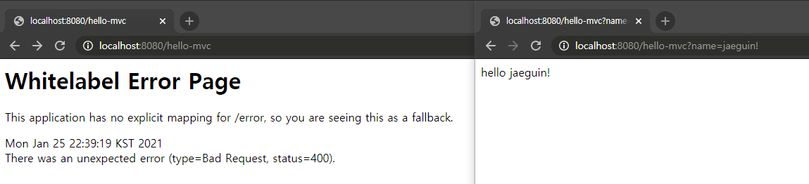 http://localhost:8080/hello-mvc?name=jaeguin! 로 해야 작동하는 이유는