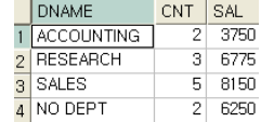 ex) 부서 없는 사원은 제외 (ROLLUP 구문 사용)